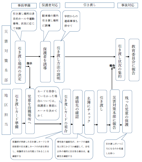 災害発生及び緊急時における、児童の保護者への引き渡しについて