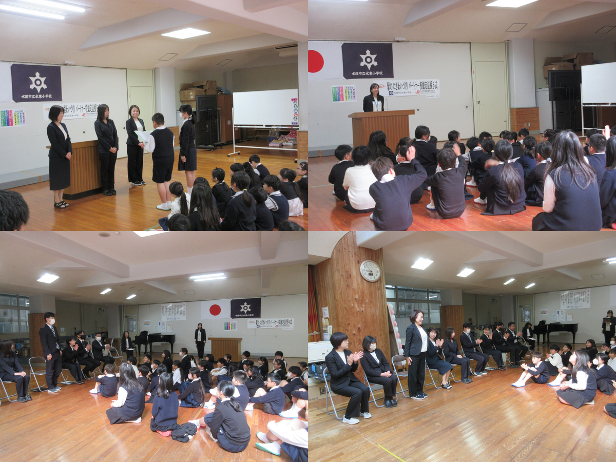 4月9日(木)、水東小学校の入学式があり、かわいい4名の新入生を迎えました。4名の新1年生は、緊張した面持ちでしたが、きちんと返事をしたり、お話をしっかり聞いたりすることができました。早く学校生活に慣れてほしいと思います。来賓の皆様、ご臨席ありがとうございました。保護者の皆様もどうぞよろしくお願いします。