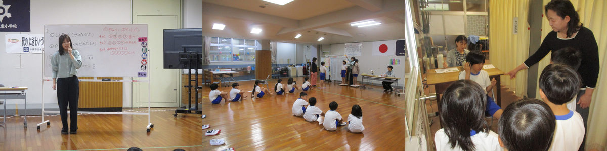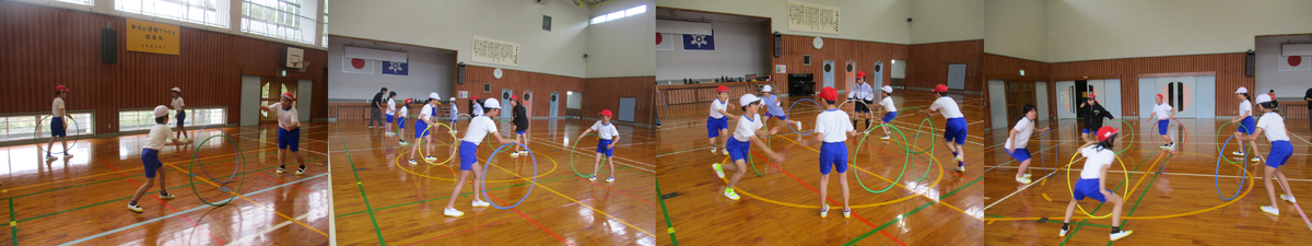 4月13日(月)の3時間目に、5・6年生が体育で「体ほぐしの運動」に取り組んでいました。フラフープを使って二人組でキャッチしたり、学年ごとに円になってキャッチしたりしていました。全員がそろってキャッチすると「やったぁ!」と歓声があがっていました。円ごとのキャッチはとっても難しそうでした。
