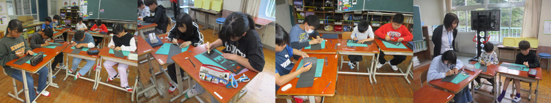 4月10日(金)の2・3時間目に、5・6年生も図工の時間でした。5・6年生は「切り絵作り」にチャレンジしていました。自分の名前を下書きし、その枠に合わせて切り抜いていました。周りの枠と名前がバラバラにならないようにするのがとっても難しそうでした。丁寧に、そして慎重に取り組んでいました。