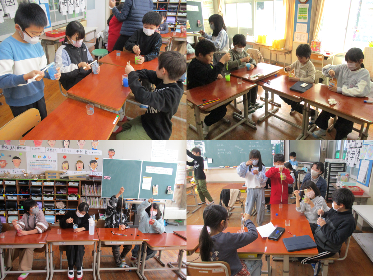 12月23日(火)の3時間目に、3・4年生はお楽しみ第一弾として、「スライム作り」をしました。お楽しみ会に向けて、子供達からはたくさんの意見があったそうです。今日と明日で少しずつやりたいことにチャレンジして楽しむ予定です。