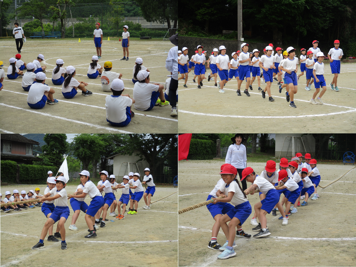 歓迎レクレーションでは、じゃんけん列車や1年生の自己紹介、新しい先生へのインタビューがありました。また、合同遊びでは、「だるまさんがころんだ」「ボールリレー」「しっぽ取り」などたくさんのゲームで大盛り上がりでした。最後は、お楽しみのお弁当タイムで、みんなと仲良く過ごし、充実した校内遠足となりました。