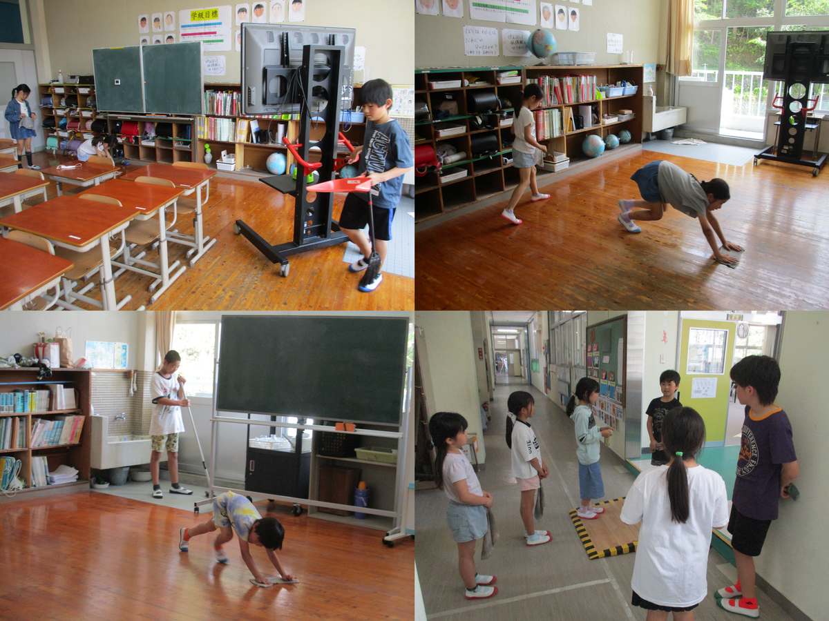 6月20日(金)の昼休みに、水曜日に計画した遊びを縦割り班で行いました。1~4班は、「けいどろ」と「だるまさんがころんだ」、5~8班は「おにごっこ」と「だるまさんがころんだ」でした。熱中症対策のため、後半の「だるまさんがころんだ」は、多目的室でみんな一緒に遊びました。とても楽しそうでした♪