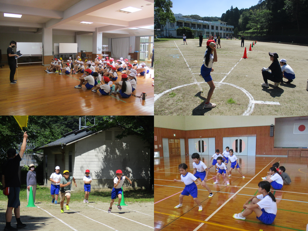 6月5日(木)の2校時に、全校児童で体力テスト「反復横跳び」「50m走」「ソフトボール投げ」を行いました。1年は初めての体力テストで、やり方を先生や高学年に教えてもらいながらがんばりました。2年生以上は、昨年度の記録を超えようと意欲満々でした。結果が楽しみです。