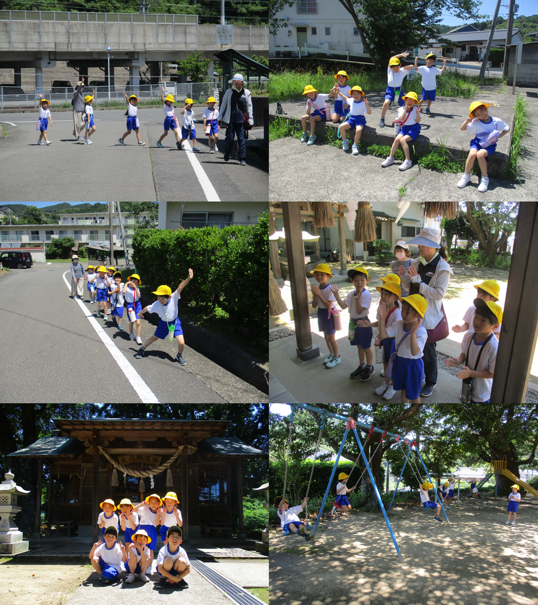 6月5日(木)の3・4校時に、1年生の通学路探検がありました。体力テストが終わったばかりですが、元気いっぱいに出発しました。線路の渡り方や道路の歩き方を学びながら、初野団地方面、はつのこども園方面、初野神社に行きました。初野神社では、お参りもきちんとできました。最後は、ブランコや鉄棒、滑り台で楽しく遊び、充実した探検となりました。