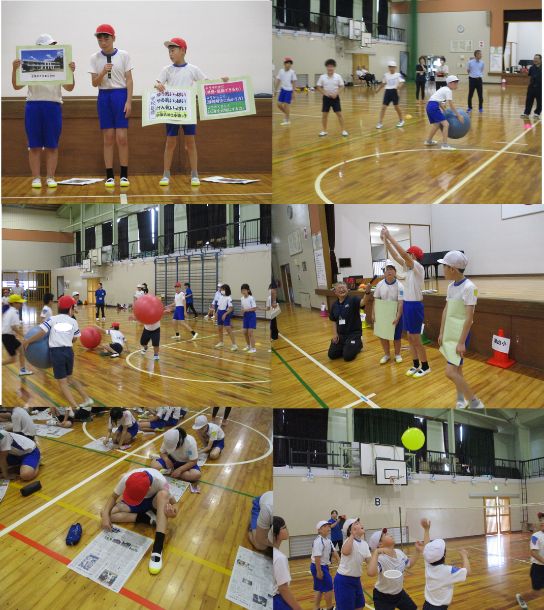 6月12日(木)に、市内の小学校のふれあい交流会がありました。こすもす学級の3人が参加して、楽しいひと時をすごしました。学校紹介・自己紹介、そして、出し物「新聞じゃんけん」の説明などを緊張しながらも頑張ることができました。ころがしドッジボールや「の」の字探し、風船バレーなどを他校のお友達と仲良く取り組みました。