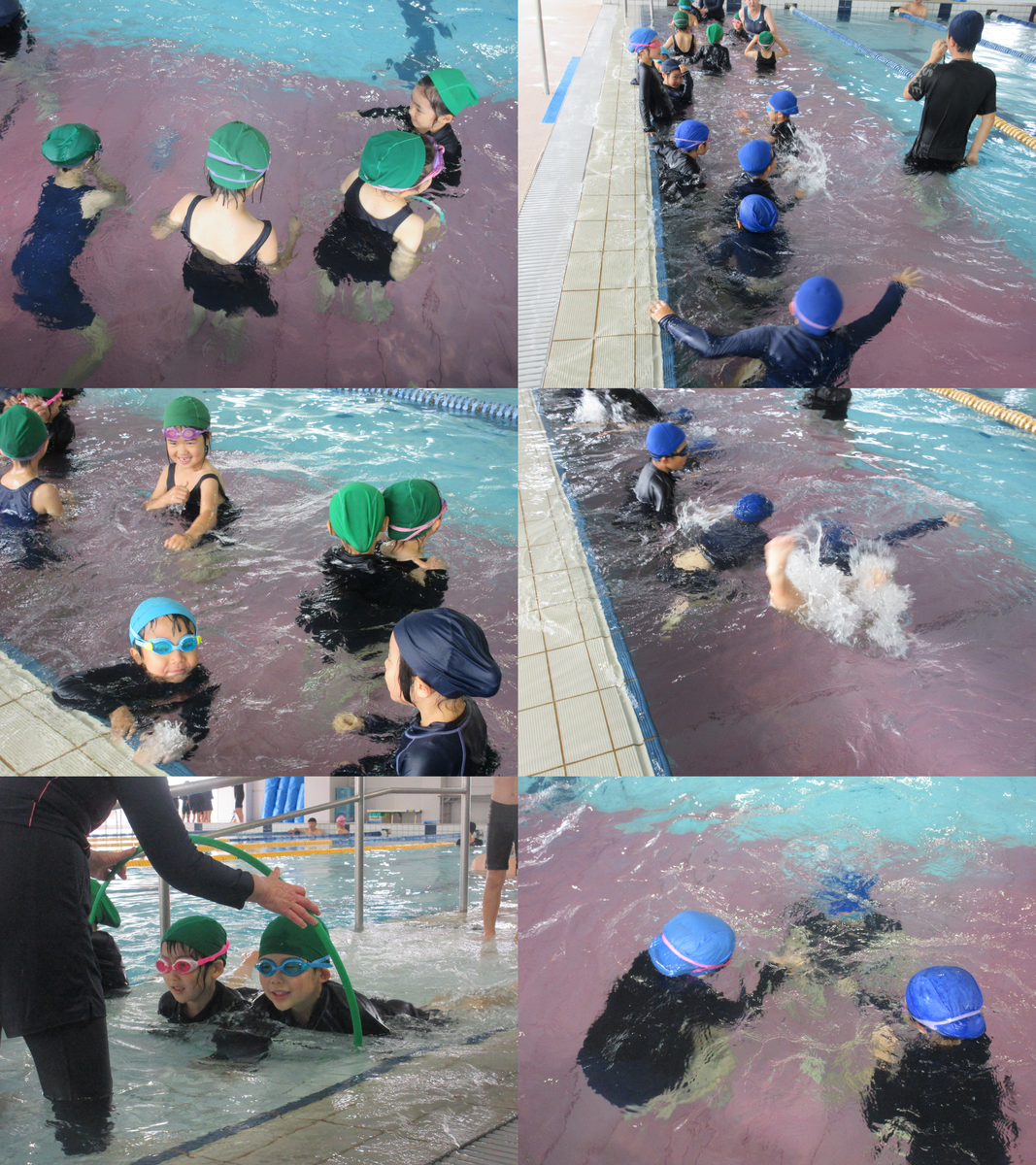 6月12日(木)の2・3時間目に、1・2年生の水泳学習がありました。初めての市民プールで水慣れをしたり、水中じゃんけん、宝探しなど水遊びを楽しんだりしました。輪くぐりも上手にできました。