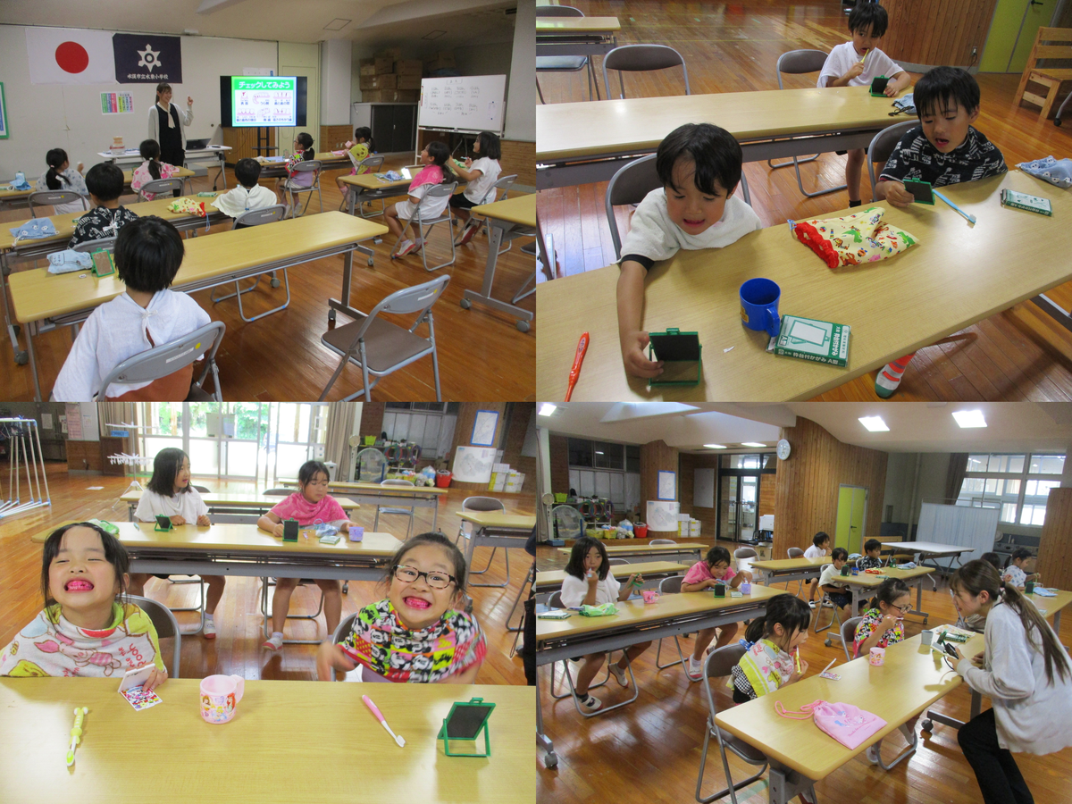 5・6年生は、「学童歯みがき大会」の教材を使用して、「歯肉の病気」や「歯肉炎自己診断と歯肉の近くの磨き方」を学びました。