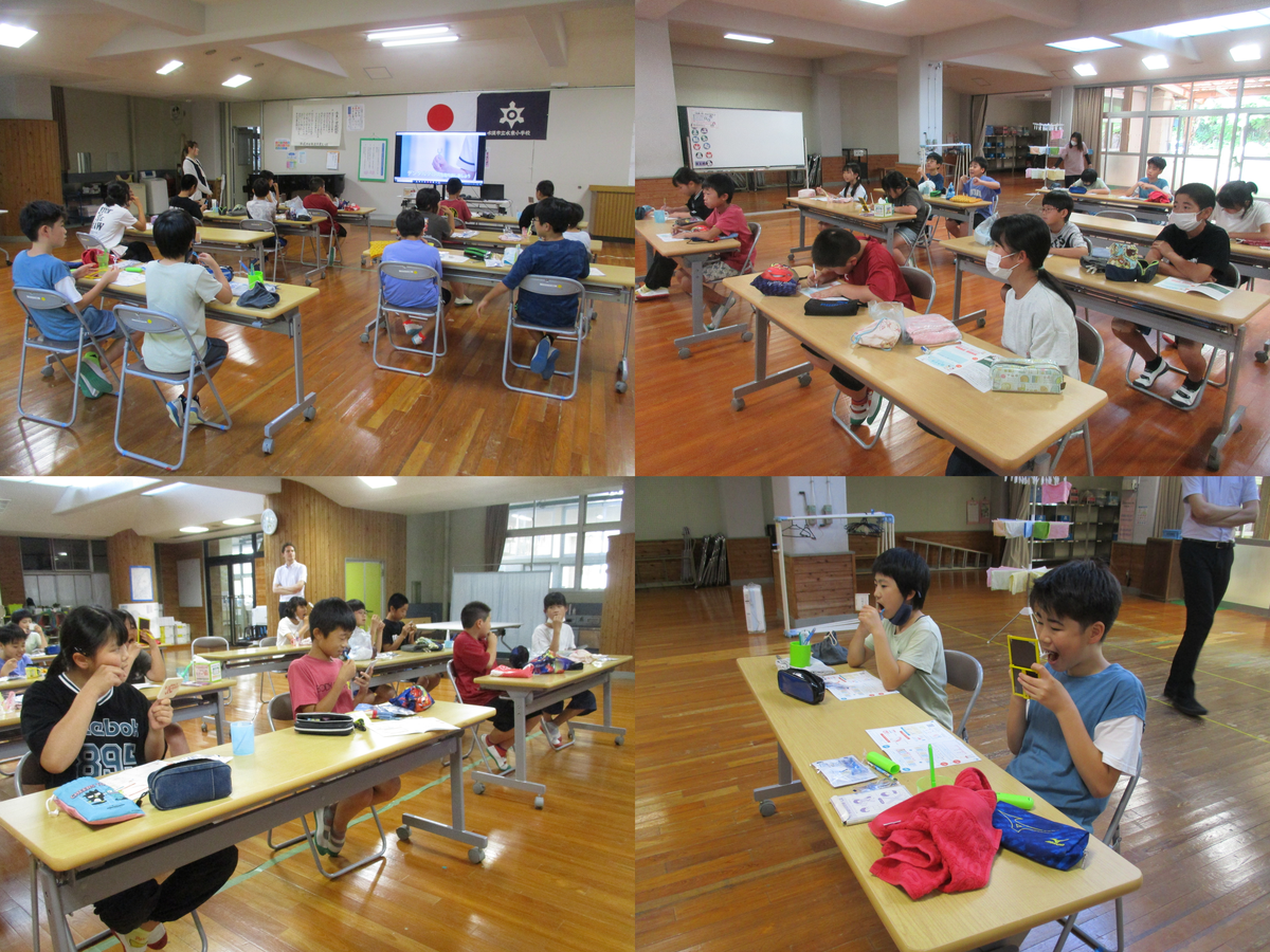 7月8日(火)2時間目に、4年生の外国語活動がありました。「What time is it now?」の学習で、ALTのジェイソン先生と楽しく活動していました。