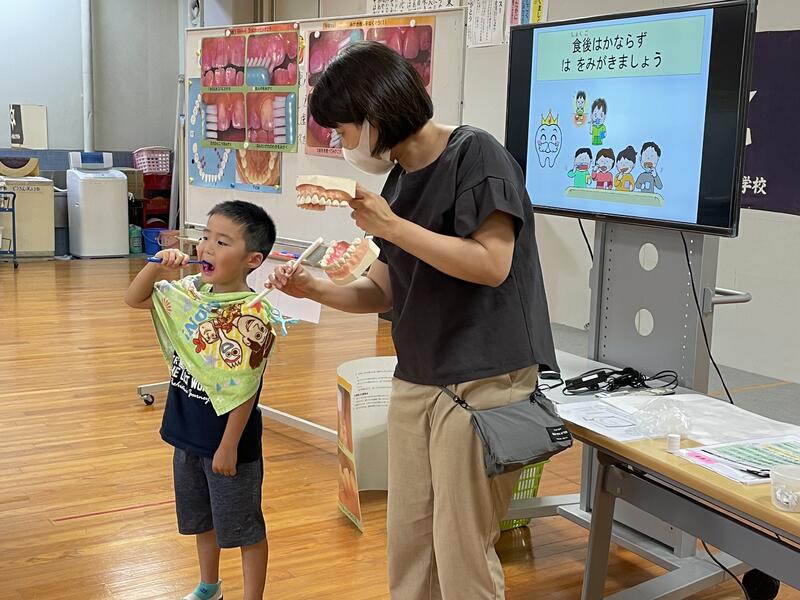今日は正しい歯みがきの方法を学び、歯や口腔衛生のよりよい習慣化へつなげることを目的に歯みがき大会が行われました。
