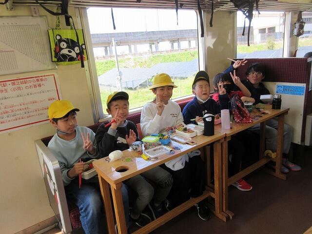3月7日(木)、お別れ遠足がありました。今回は、肥薩おれんじ鉄道乗車体験学習も兼ねて行いました。電車に初めて乗車する子もいたりして、車内ではかなりテンションが上がっていました。出水駅に到着後は車両洗浄体験もありました。お弁当は、車内で食べ、到着後は、体育館で6年生とのお別れ会をしました。鬼ごっこをしたり、6年生に関する〇×クイズをしたりして楽しいひと時を過ごしました。