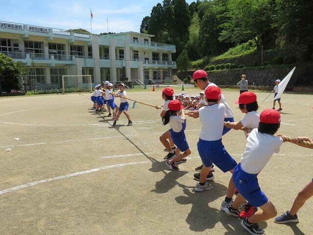 5月17日の運動会練習は、全校で玉入れや綱引き、リレーなどの練習をしました。本番さながらに「ガンバレー!」の大きな声が運動場中に響き渡っていました。