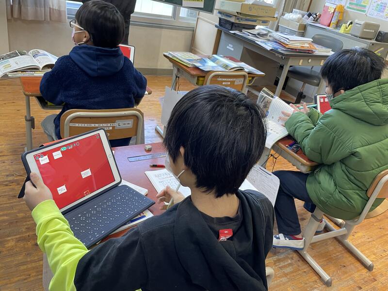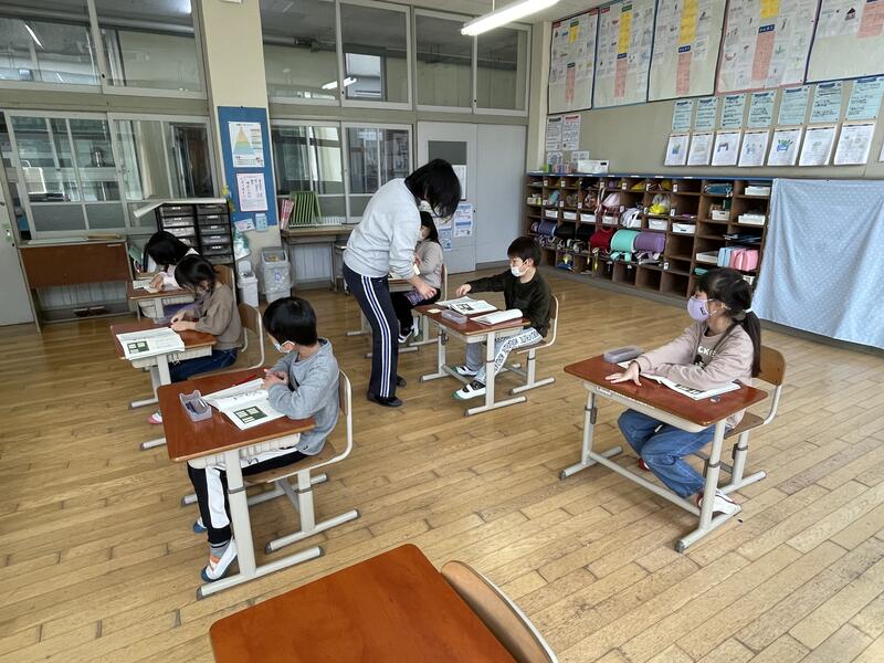 検査を受けない4年生は、校長室でアシストシートに取り組みました。