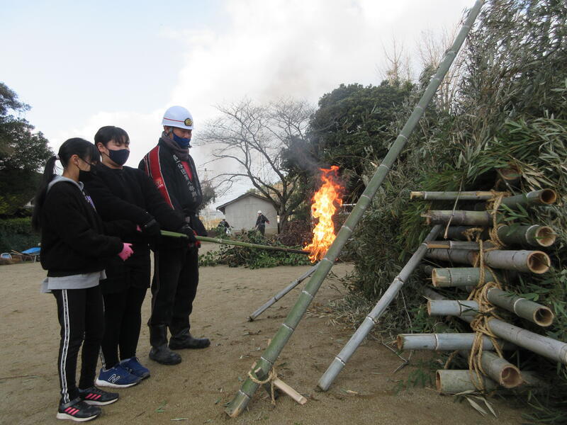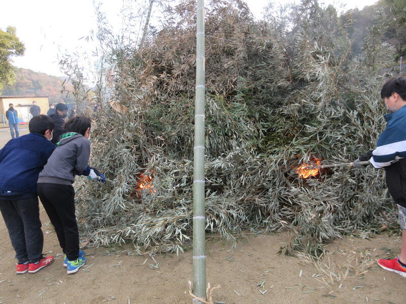 1月7日(土)に天候が心配されていましたが、無事、水東小学校グラウンドでどんどやが行われました。