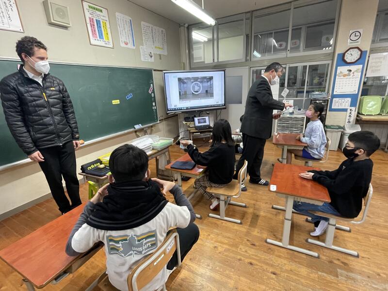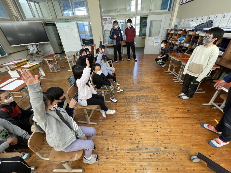児童会のみんなの進行で互いの教室をオンラインで結び、交流しました。