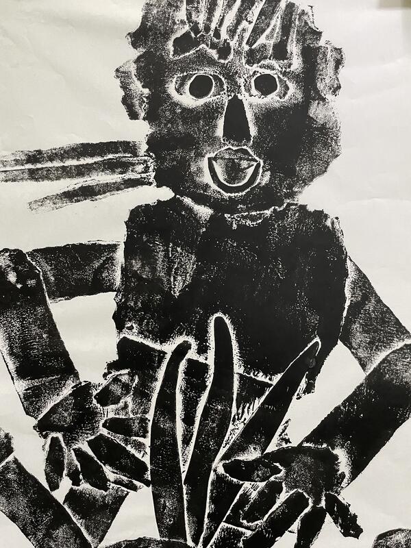 2年生のみんなが図工の時間に作ったお面を衣装も着て見せに来てくれました。