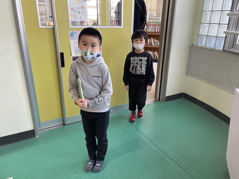 昨日、5年生は家庭科で作ったエプロンを見せに来てくれました。3年生は図工の作品を見せてくれました。