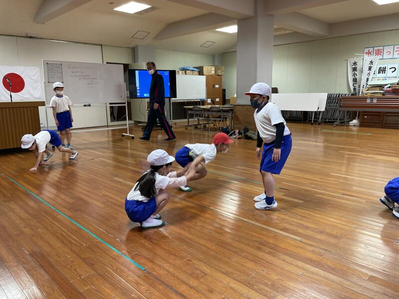 来週の授業参観時の発表に向けて、今日は餅つき踊りの最後の練習を行いました。