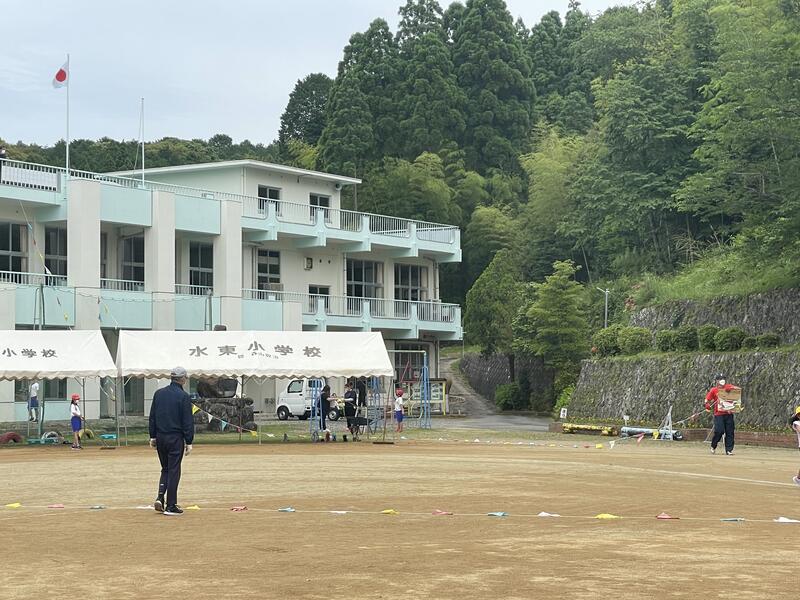 その後、本校職員が車でタイヤを引いて運動場をきれいに整えることができました。