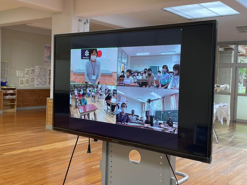 屋外で実施予定でしたが、昨日出された大雨の予報のため、屋内でリモートによる交通安全教室を行いました。