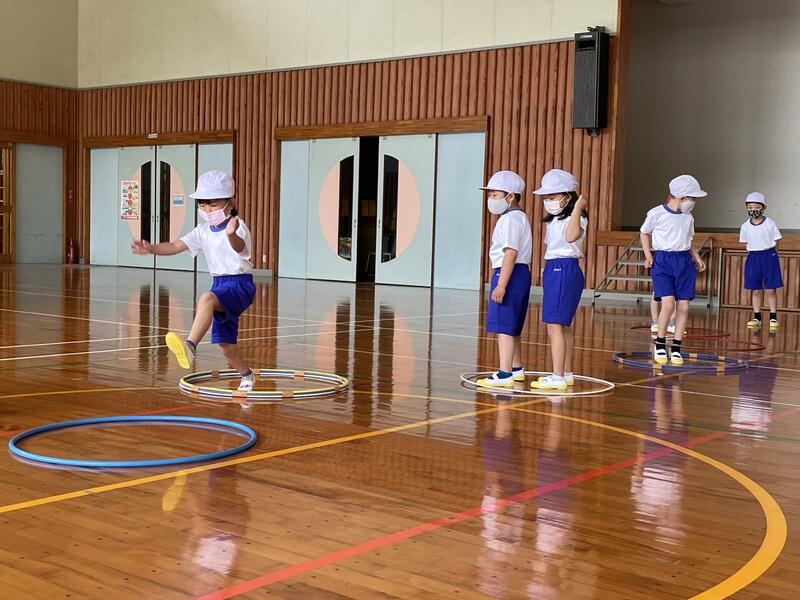 校内で歓迎のレクリエーションをした後、城山公園まで出かけました。