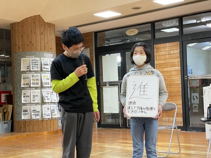 始業式では、各学年の3学期の目標を相談して漢字一文字で表してもらいました。