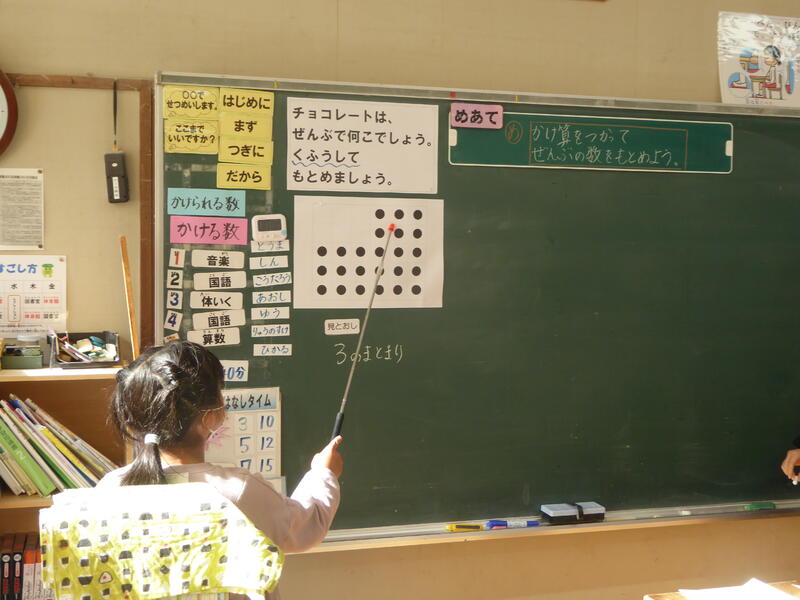 算数の学習で、「チョコレートは、ぜんぶで何こでしょう。くふうしてもとめましょう。」という問題にチャレンジしました。