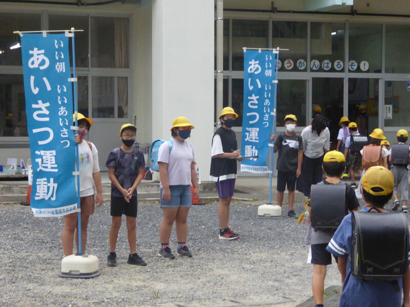 具体的な取組として児童会のみんなが中心となり、朝の「あいさつ運動」をがんばっています。