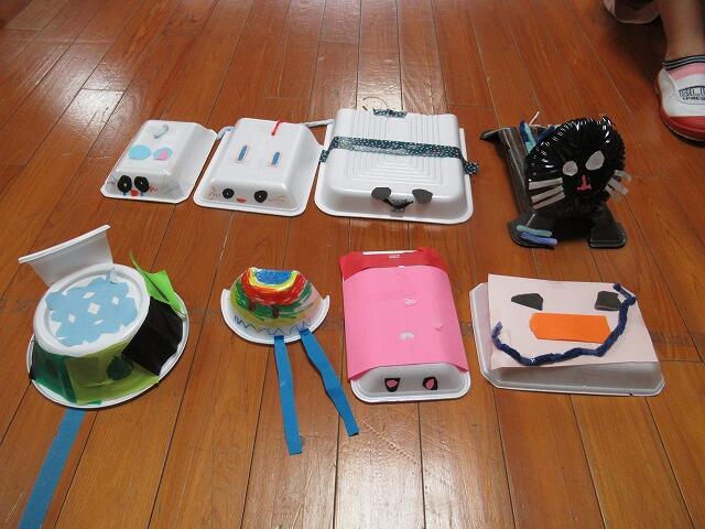 1年生は、図工の「ふわふわゴー」で、かぜで動くおもちゃを作りました。