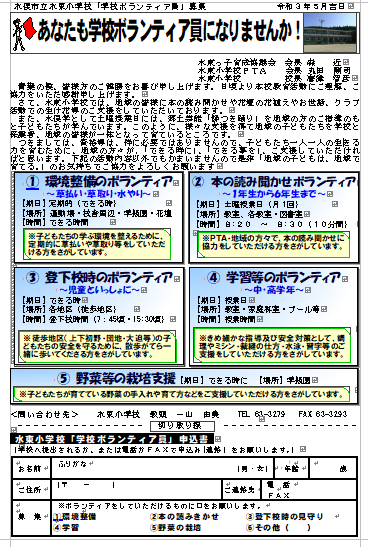 先日5月9日(日)に、水東小学校PTA美化作業を行いました。