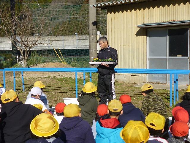1月18日(金)パンジーの苗を植えました。校長先生から説明があった後、縦割り班に分かれ、