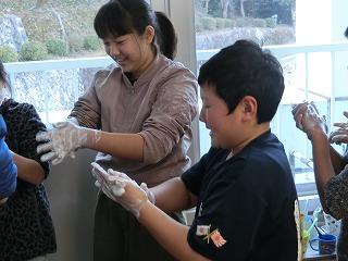 しっかり洗っているつもりでも、意外に汚れが落ちていないことに子どもたちもびっくりしていました。