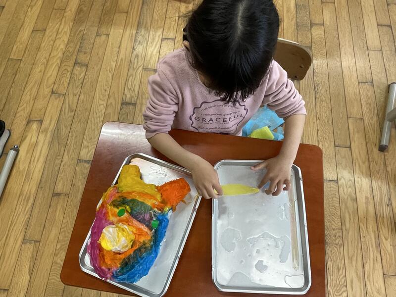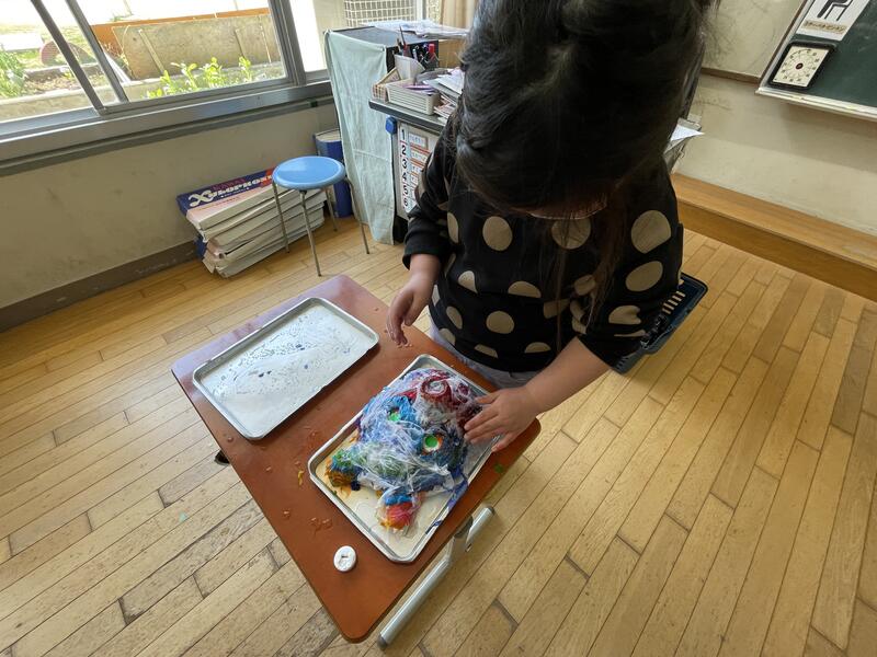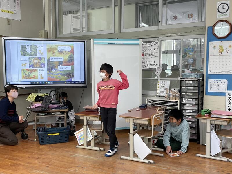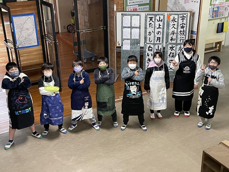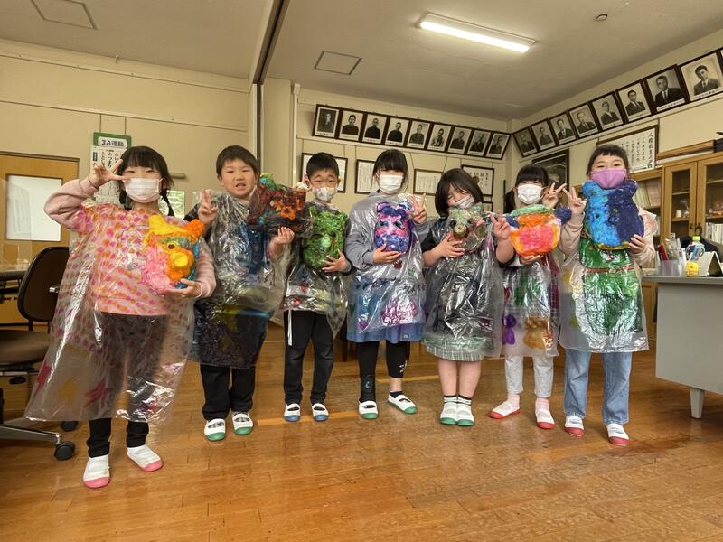 昨日、5年生は家庭科で作ったエプロンを見せに来てくれました。3年生は図工の作品を見せてくれました。