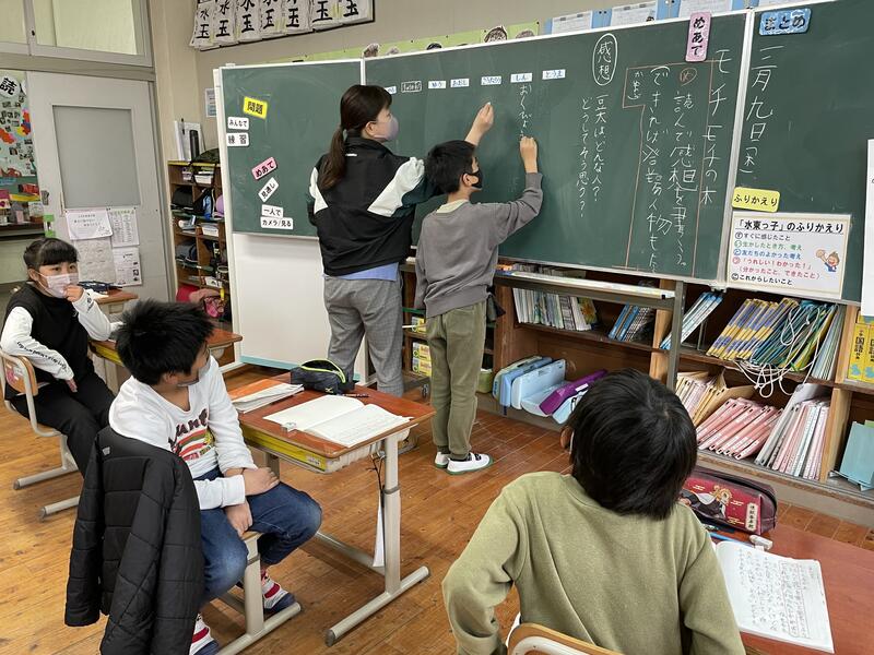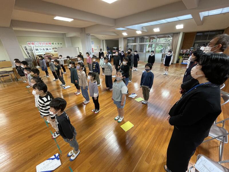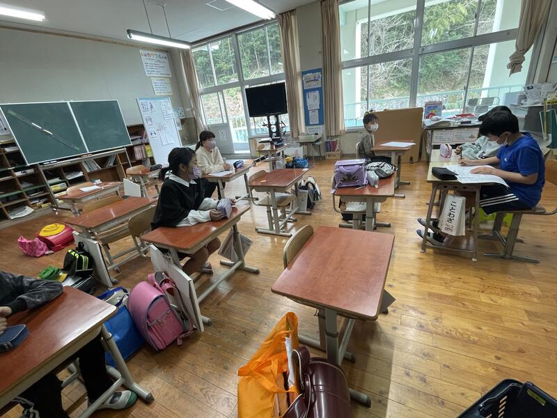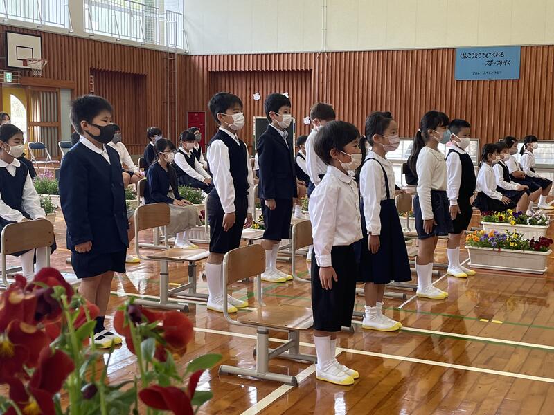 明日の入学式に向けて、子どもたちと先生が協力して式場などを準備しました。