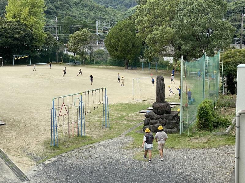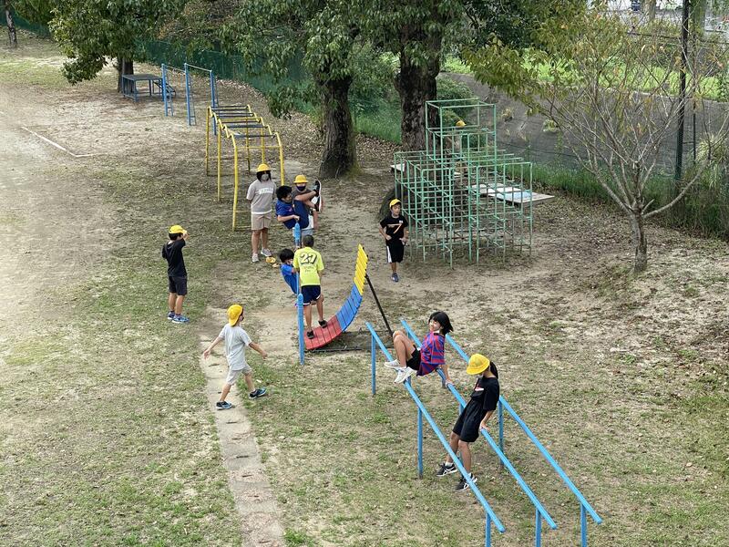 今日はたくさんの子どもたちが昼休みに運動場で遊んでいます。