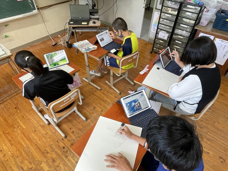 今日の昼休み、科学展の作品づくりに多くの子どもたちが取り組んでいました。