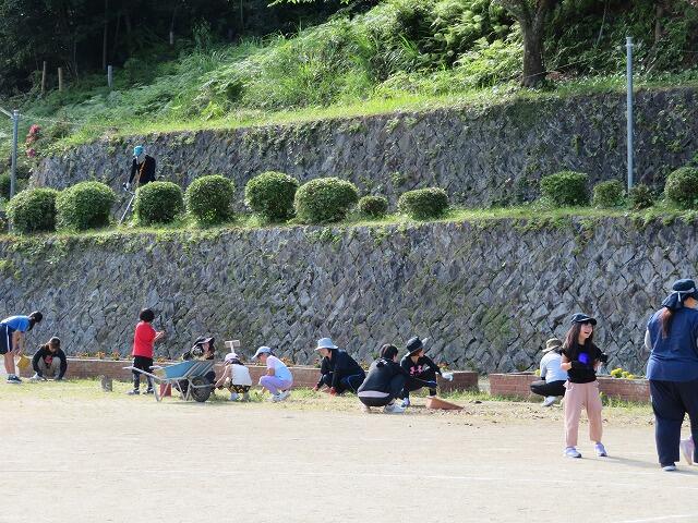 9月12日(木)の朝活動の時間に花壇の手入れをしました。見ごろを過ぎた花を抜いたり、花壇や花壇周りの草取りをしたりしました。。朝の比較的涼しい時間帯でしたが、みんな汗をかきながら一生懸命取り組んでいました。短時間の間に花壇がすっきりしました。