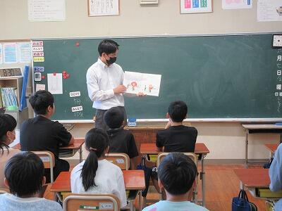4月25日、読書活動推進員の方から1年生へ読み聞かせをしていただきました。みんな食い入るように聞き、お話の世界を楽しんでいました。