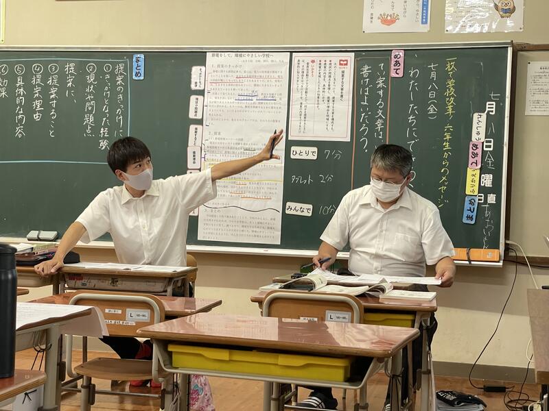 6年生は、「学校を改革するために提案する文章は、どのような構成で書けばよいか。」について学習リーダーを中心に、ICTも活用しながら学習しました。