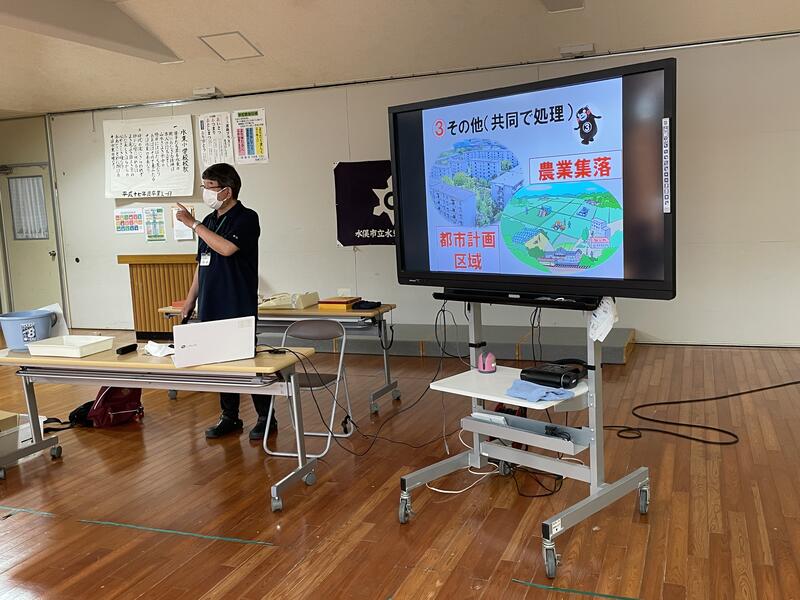 熊本県環境センターの中村様が講師として、子どもたちに水や環境に関する様々なことをわかりやすく講義してくださいました。