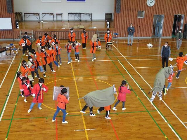 12月12日(火)、体育館で保存会の方のご指導の下、法被を着てふれあい文化祭前最後の練習を行いました。まずは、全員で歌の練習。次に各パートに分かれて練習し、最後に全体を通した練習を2回ほどしました。本番では、保護者や地域の皆さんに笑顔で楽しく発表してほしいと思います。
