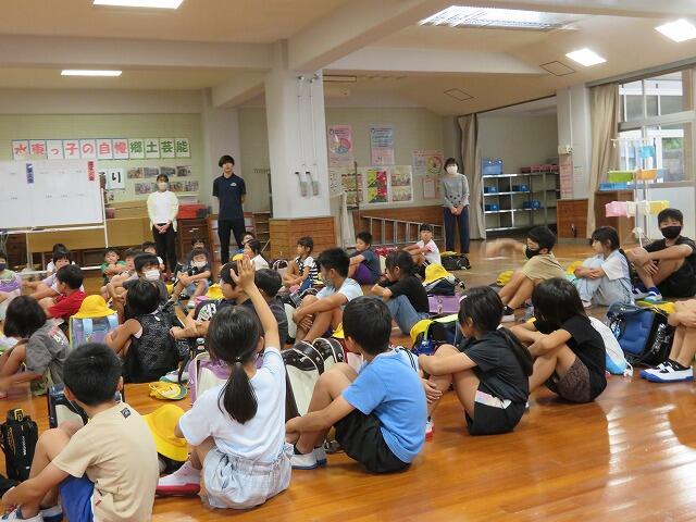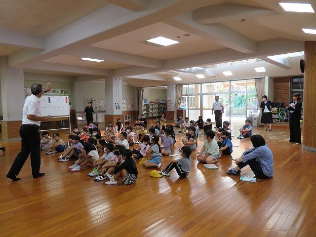 3校時に地震に備えた避難訓練を実施しました。「運動場に避難してください。」の放送があってから2分もかからずに集合し人員を確認できました。そのあと、多目的に移動し、「平成28年(2016年)熊本地震」で被災した児童の話を聞いたり、訓練の振り返りをしたりしました。