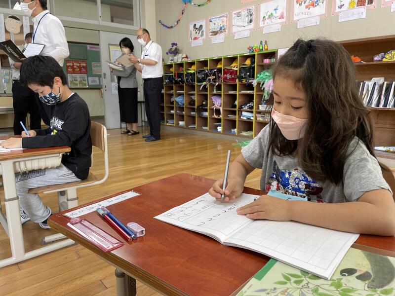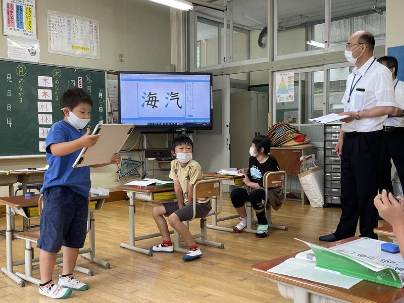 今日は芦北教育事務所と水俣市教育委員会より4名の先生方においでいただき、子どもたちや先生方の様子をご覧いただきました。