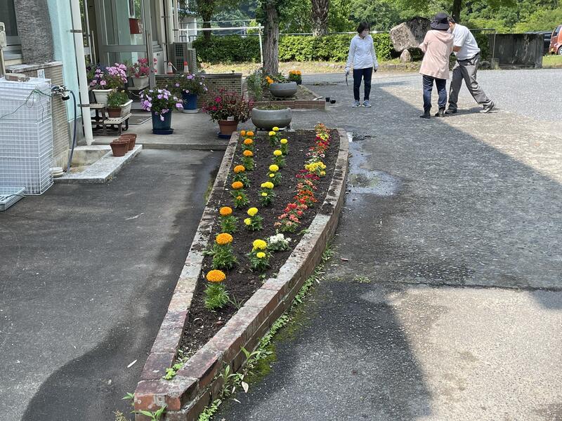 今日の6時間目、全校児童で花壇に花の苗を植えました。