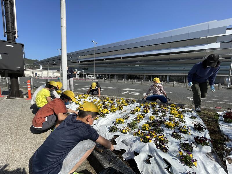 今年度から取組を始めた新水俣駅花壇でのボランティア活動。