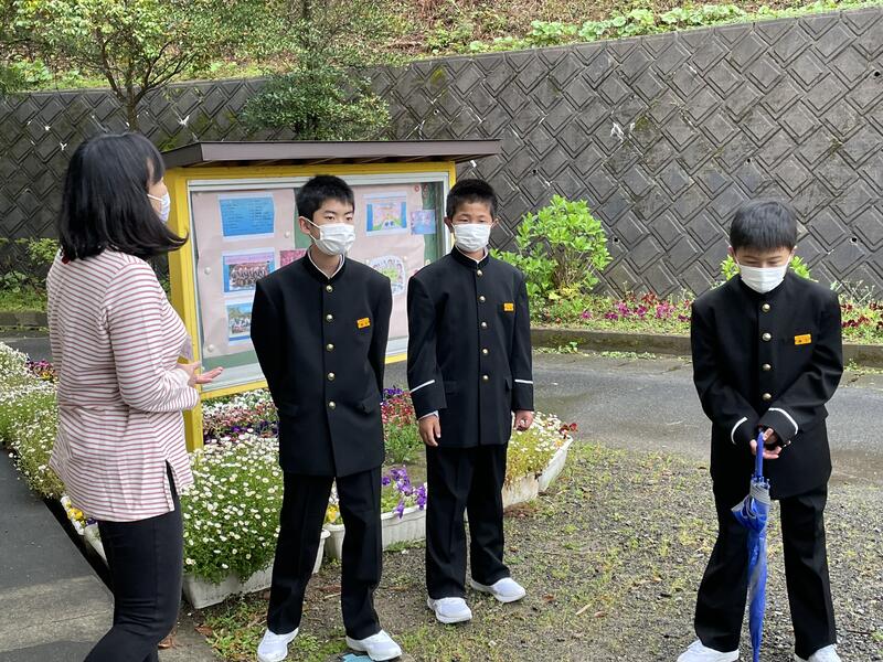 17日、この春、水俣第一中学校を卒業した水東小学校の卒業生が訪ねて来てくれました。