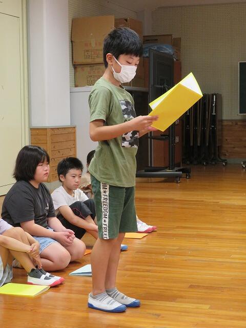 9月4日(水)の児童集会の時間に学年の代表が2学期に頑張りたいこと等を発表しました。1学期や夏休みのことを踏まえ、2学期の学習や行事のこと、家庭生活のことまで自分なりの目標を発表してくれました。