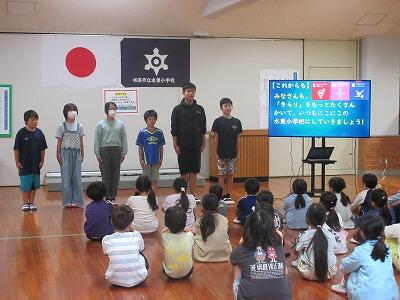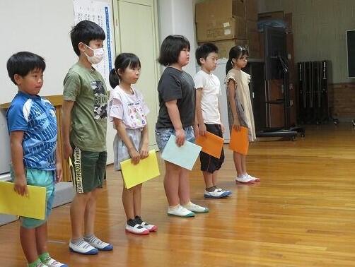 7月19日(金)、1学期の終業式を多目的ホールで行いました。1年生から6年生までの代表が、1学期を振り返って発表してくれました。学習のことや生活のことで自分なりに頑張ったことをたくさん発表してくれました。一人一人、明確なめあてをもって学校生活を送っていたことがわかりました。どれも大変素晴らしい発表でした。