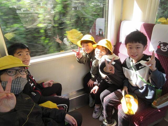 3月7日(木)、お別れ遠足がありました。今回は、肥薩おれんじ鉄道乗車体験学習も兼ねて行いました。電車に初めて乗車する子もいたりして、車内ではかなりテンションが上がっていました。出水駅に到着後は車両洗浄体験もありました。お弁当は、車内で食べ、到着後は、体育館で6年生とのお別れ会をしました。鬼ごっこをしたり、6年生に関する〇×クイズをしたりして楽しいひと時を過ごしました。
