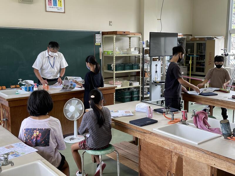 熊本県環境センターの中村様が講師として、子どもたちに水や環境に関する様々なことをわかりやすく講義してくださいました。
